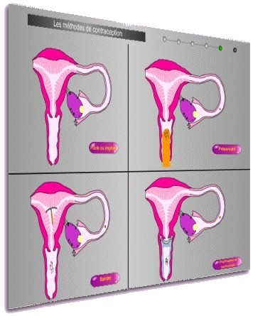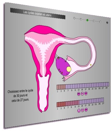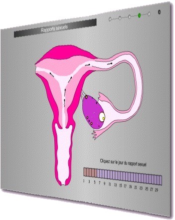 Cette série d’animations interactives a pour but de montrer comment la muqueuse utérine et un follicule ovarien évoluent au cours du cycle féminin, de comprendre à quels moments du cycle une fécondation est théoriquement possible et d’observer comment agissent les contraceptifs.